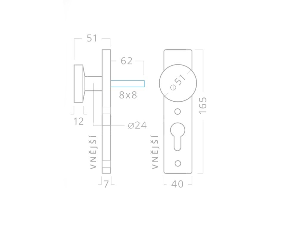 Dveřní kliky - rozteč kliky: | 72 mm |