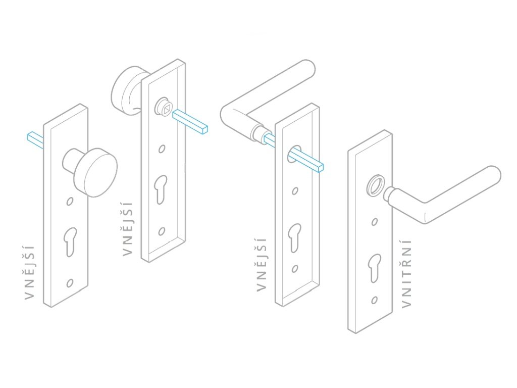 Dveřní kování je dostupné ve všech provedeních klíčů tedy PZ, BB, WC varianta a navíc také varianta klika/koule.