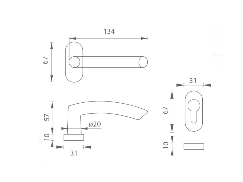| Dveřní kliky - tvar rozety/štítu: | Oválná rozeta |
