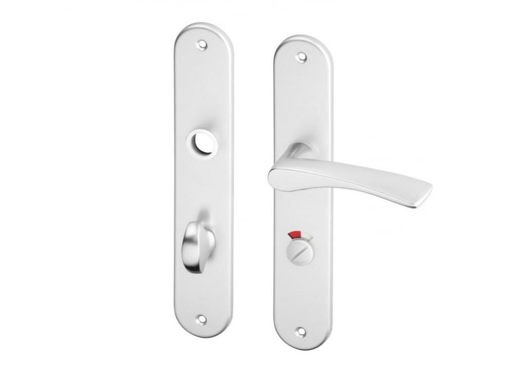 Klika je volně ve štítu bez vratné pružiny. Bez trnů proti pootočení. Štíty jsou přišroubovány vruty shora na dveře.