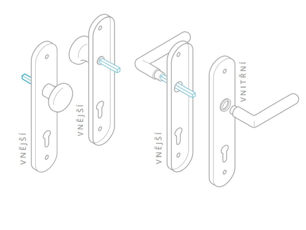 Dveřní kování je dostupné ve všech provedeních klíčů tedy PZ, BB, WC varianta a navíc také varianta klika/koule.