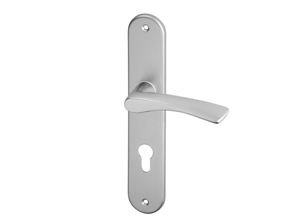 Klasické dveřní kování do interiéru - štítková klika oválná na dveře s jednoduchým designem.