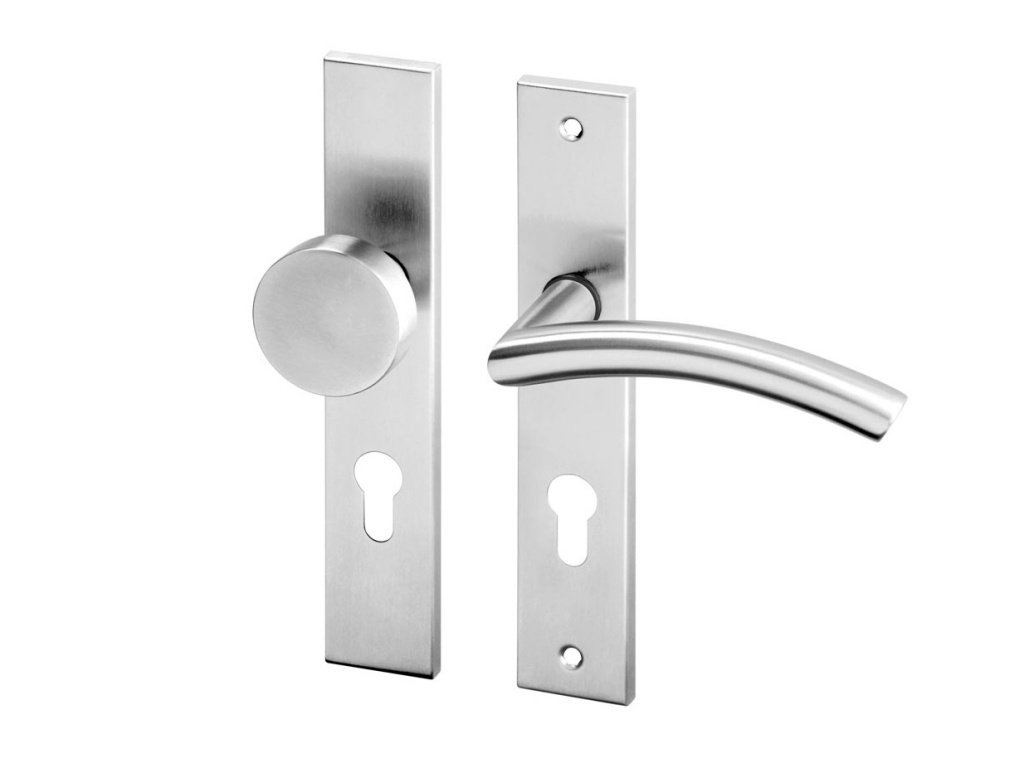 Moderní dveřní kování do interiéru - štítková klika hranatá na dveře, díky svému elegantnímu vzhledu dotvoří design dveří a nenaruší vzhled celé místnosti.