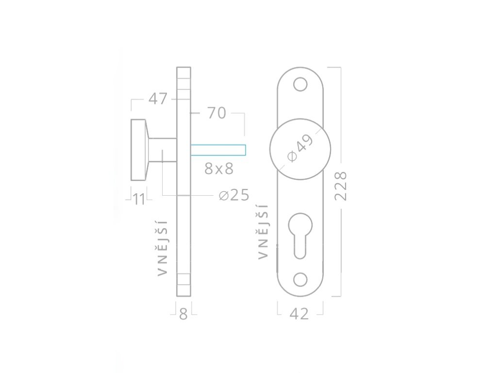 Dveřní kliky - tvar rozety/štítu: | Oválný štít |