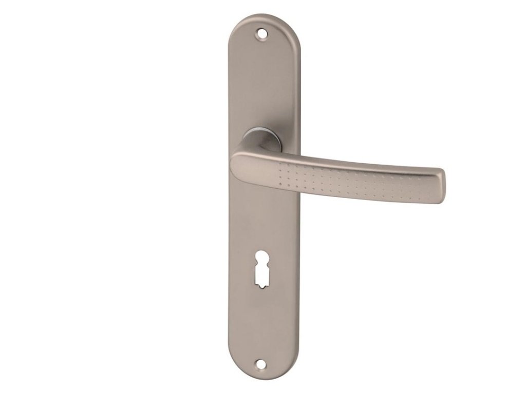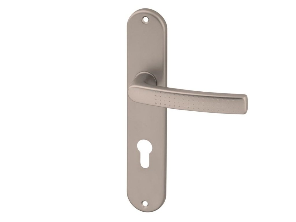 Moderní dveřní kování do interiéru - štítková klika oválná na dveře s jemným designem.