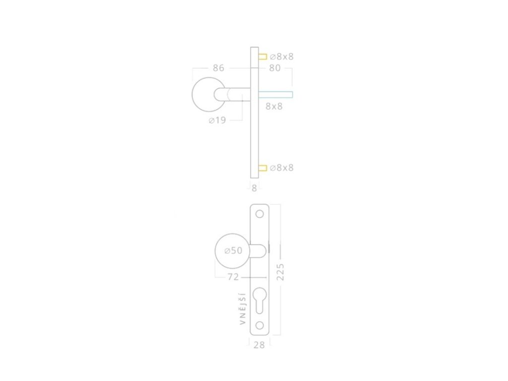 | Dveřní kliky - tvar rozety/štítu: | Úzký štít |
