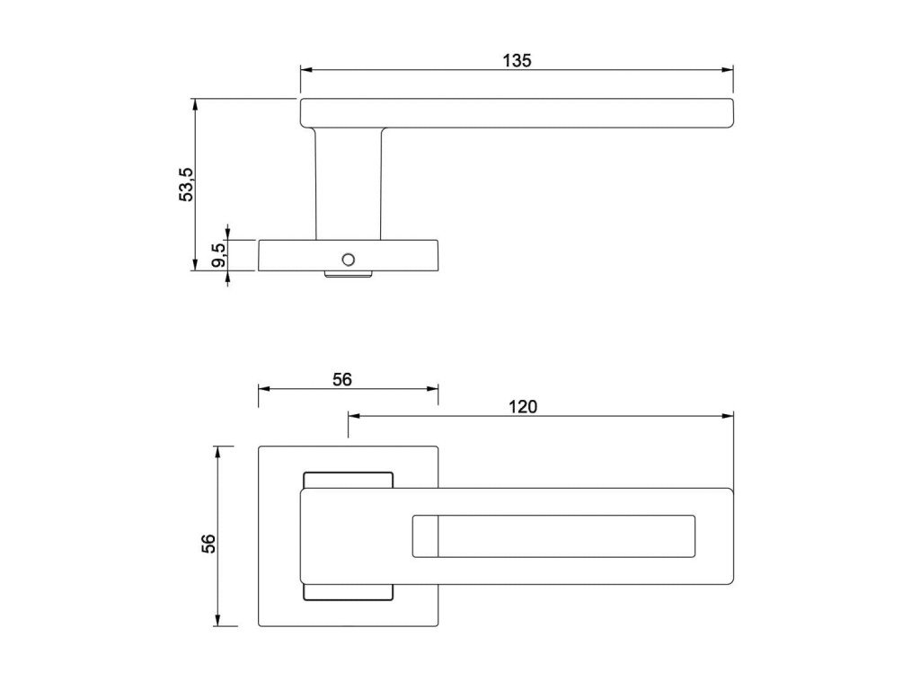 | Dveřní kliky - tvar rozety/štítu: | Hranatá rozeta |
