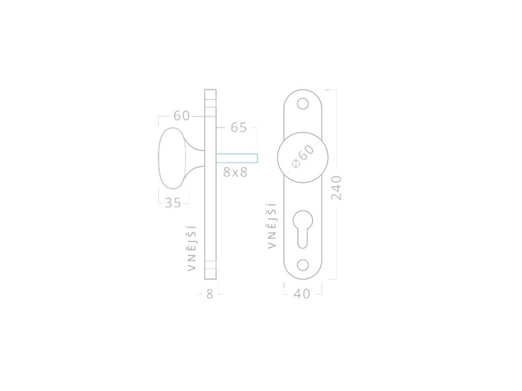 Dveřní kliky - tvar rozety/štítu: | Oválný štít |