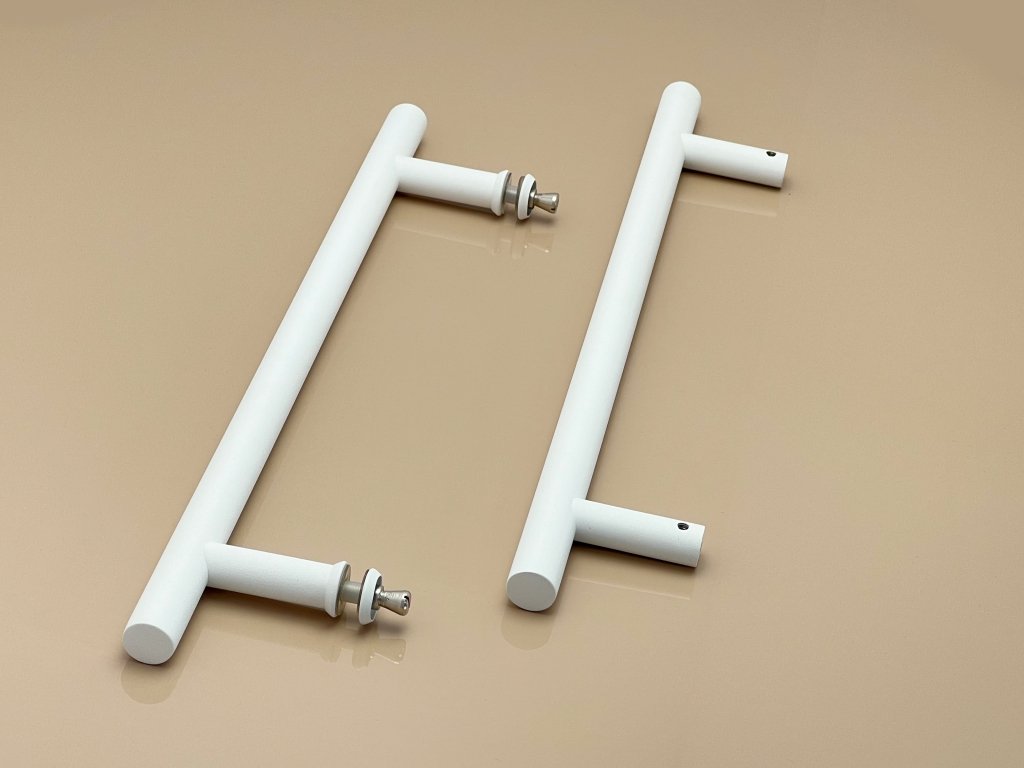 Oboustranné nerezové madlo s bílou jemně strukturovanou povrchovou úpravou. Díky svému povrchu je velmi příjemné na dotek.