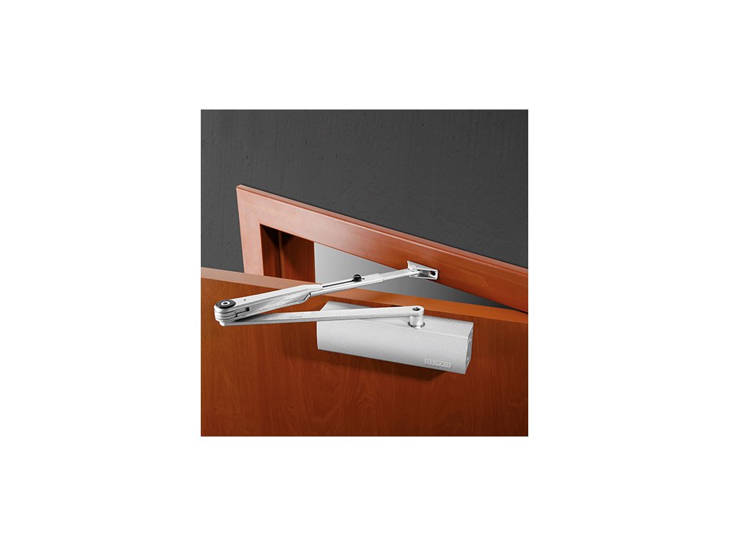 Tento model dveřního samozavírače je určen pro dveře o hmotnosti od 40 kg do 100 kg a o šířce dveří od 750 mm do 1250 mm. Dodáváno s raménky - bez aretace, s pevnou aretací a vypínatelnou aretací. Rozsah nastavení aretace od 70° do 150°. Vhodné pro kouřotěsné a požární dveře, vhodné také pro venkovní použití díky tepelné stabilizaci. Vyrobeno z eloxovaného hliníku.