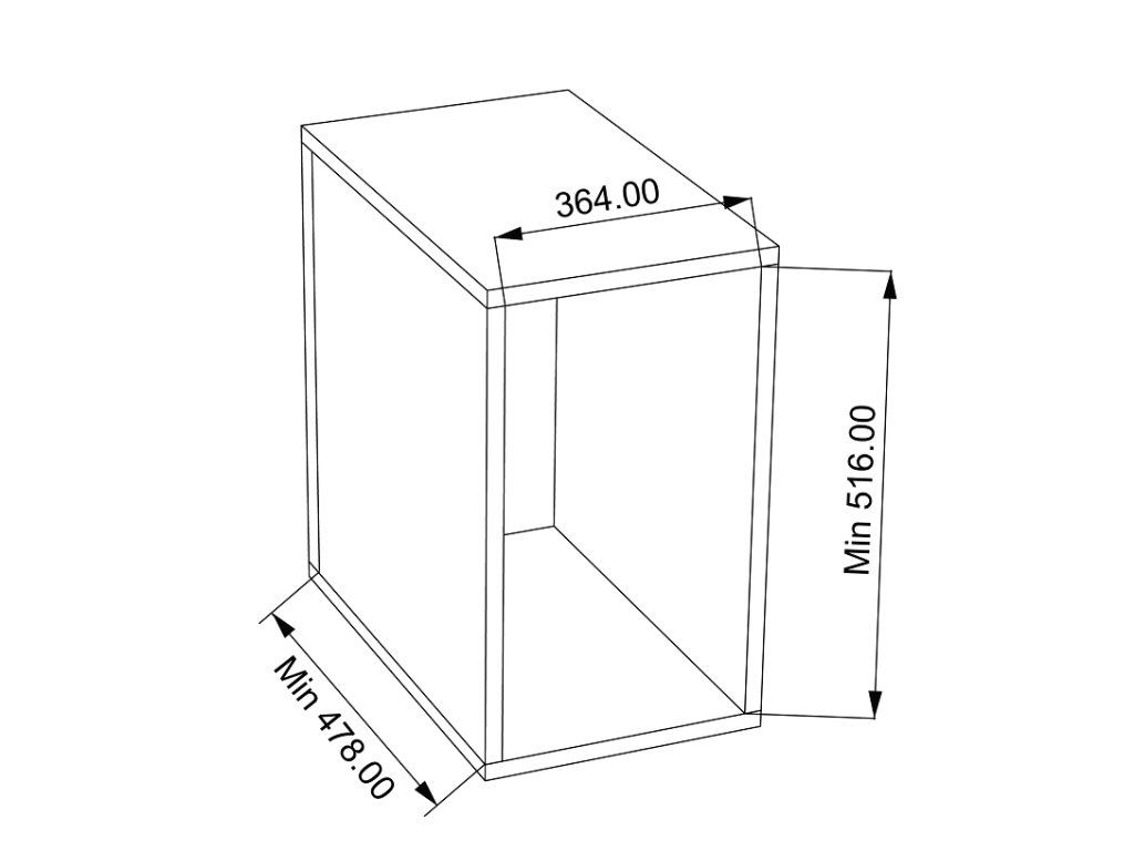 Pro korpus s minimální hloubkou 500 mm a minimální výškou 650 mm.