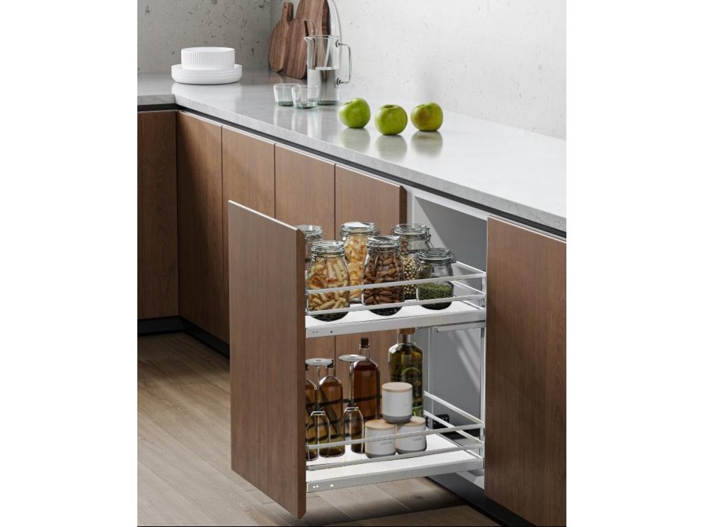 Dvoupatrový boční koš, který má lehký a tichý chod a je pro korpus o šířce 400 mm. Maximální zatížení koše je 30 kg.