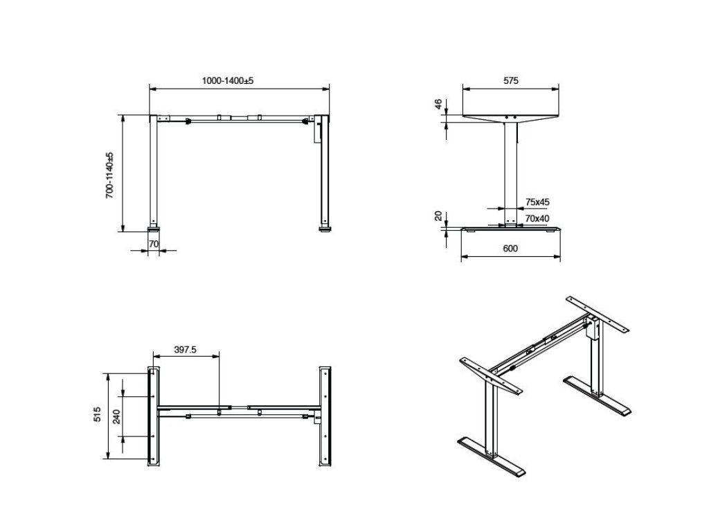 Lze použít pro šířku stolu od 986 až 1400 mm. Výška podnože lze nastavit v rozmezí 700 - 1150 mm.