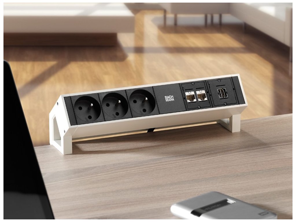 - Nábytkové elektro zásuvky do pracovního stolu - zde jde hlavně o velkou variabilitu vybavení jednotlivých zásuvek, nedávno novinkou v segmentu dnes již naprosto běžně používané zásuvky s USB nabíječkou. Mezi TOP produkty patří zásuvka Bachmann DESK, určená k instalaci na stolovou desku a zásuvka Bachmann Twist Office v barvě matného chromu, černé bílé nebo nerezové barvě v různých kombinacích vybavení zásuvky.