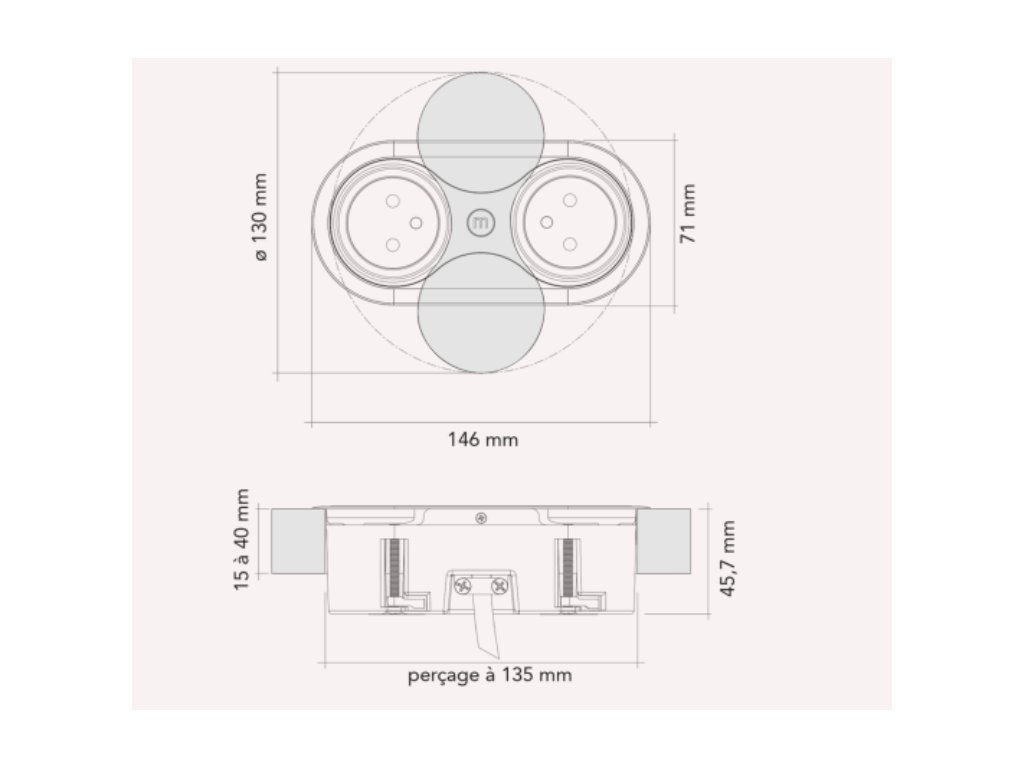 Montážní otvor el. zásuvky: | ovál 60 mm x 135 mm |