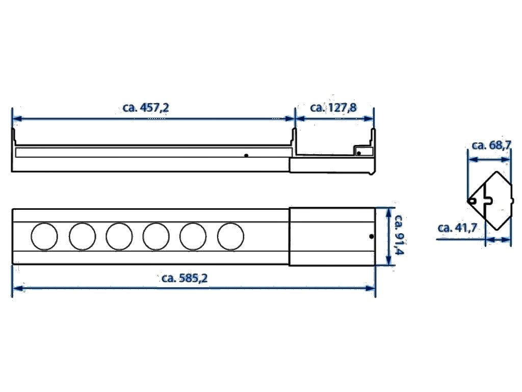 Vnější rozměr el. zásuvky: | 457-585 x 69 x 91 mm |