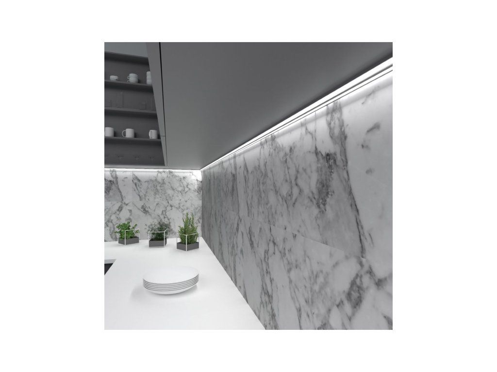 NEOLINE je profil pro povrchovou montáž s možností použití dvou LED pásků vyzařujících světlo v různých směrech. Ideální řešení pro osvětlení pod skříňkou v kuchyni.