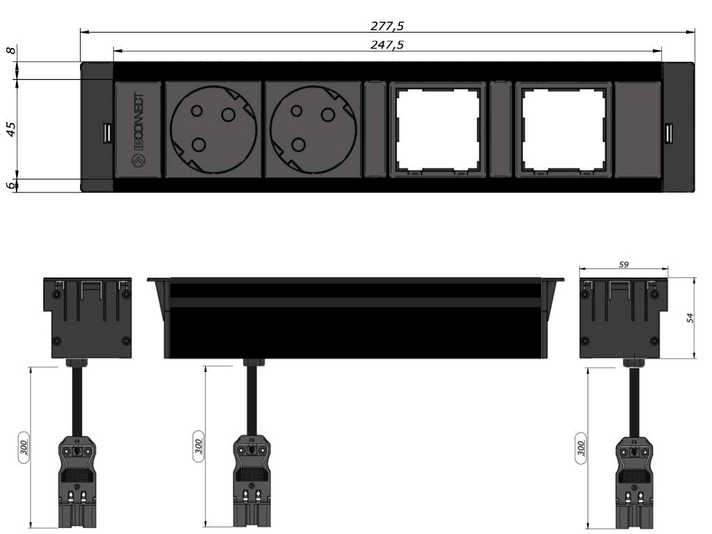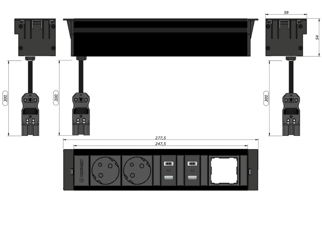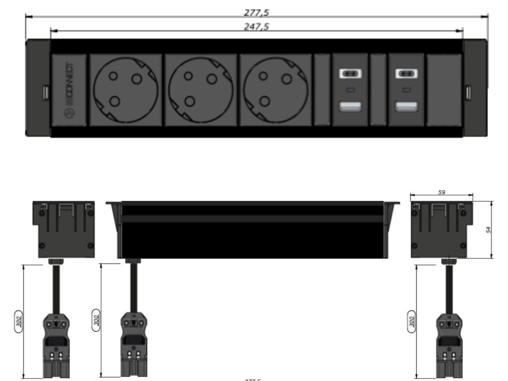 Typologie el. zásuvky: | Zásuvka s USB, Zásuvky s 230V, Zásuvka s 230V a další pozicí |