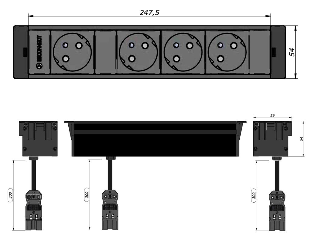 - Napájecí kabel v požadované délce - v případě zapojení zásuvky do síťové zásuvky.