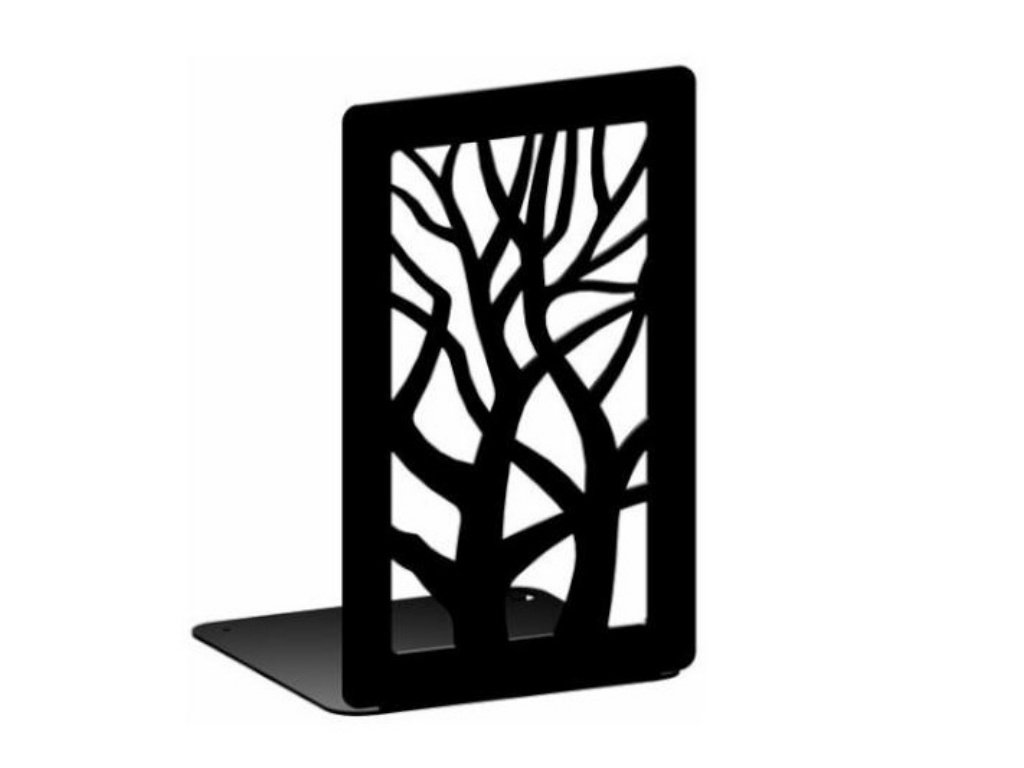 Moderní kovová knižní zarážka v trendy povrchové úpravě - černá. S motivem větviček.