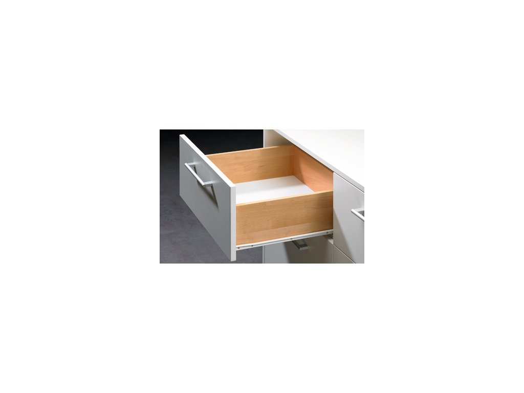 výsuv pro dřevěnou zásuvku jako jednoduché a funkční řešení. Nosnost výsuvu je 20 kg. Rolničkový výsuv je vybaven funkcí Stop Control - integrované samočinné dovírání zásuvky, Dvojitým dorazem a pojistkou proti nechtěnému vysunutí