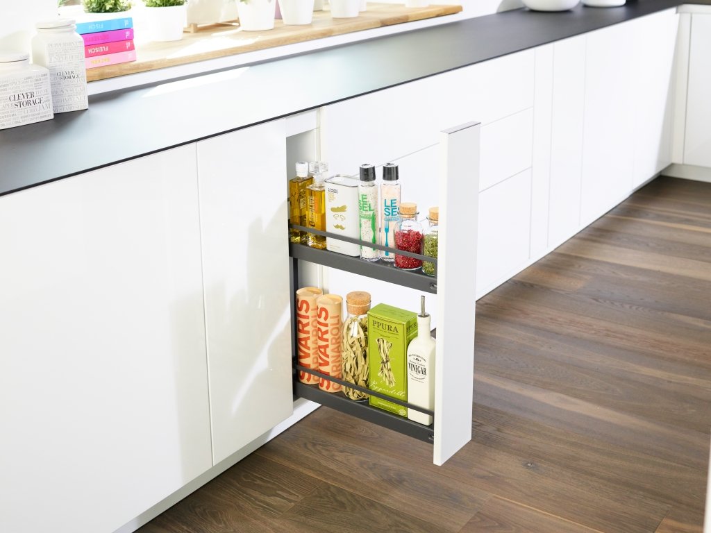 Koš do spodních skříněk pro rám DISPENSA junior slim v antracitové barevné úpravě v provedení arena style. Koše jednoduše nasadíte na rám.