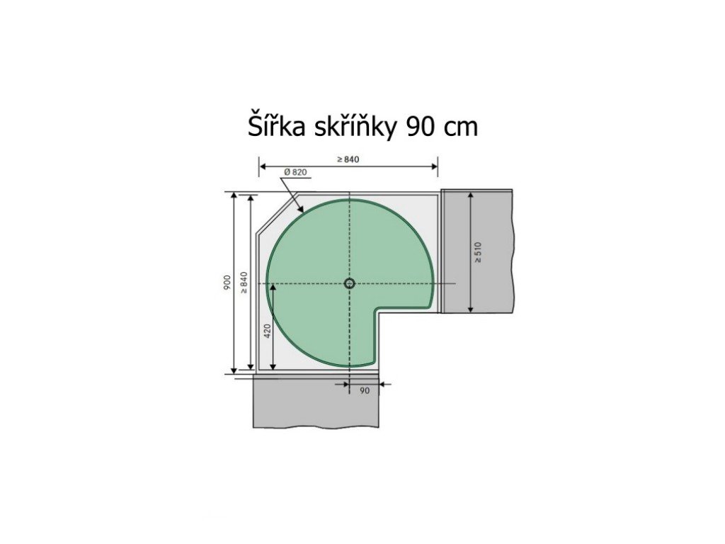 | Drátěný program - vnější šířka skříňky (cm): | Rohová skříňka 90 |