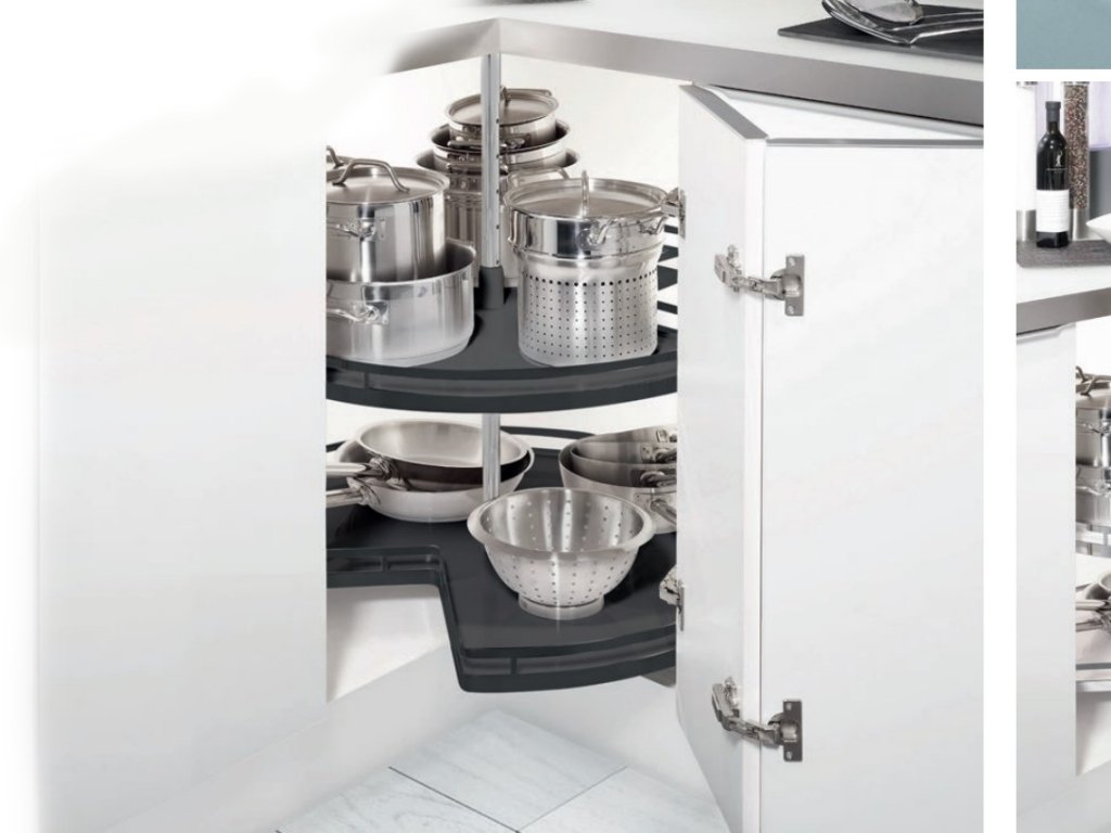 Průměr koše Ø 820 mm. Pro skříně o rozměru 900x900 mm.