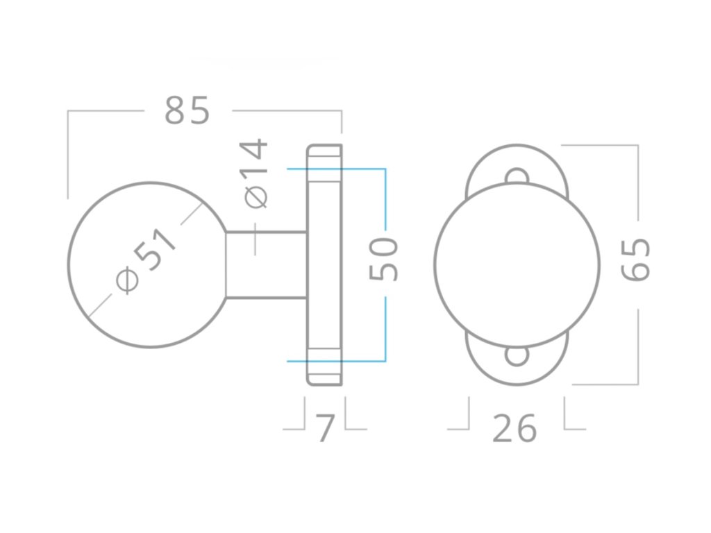 Koule RF - hliníková s eloxovanou povrchovou úpravou F1. Pevně osazena na oválné rozetě na podkladu s otvory pro dva vruty. Dodáváno bez vrutů.
