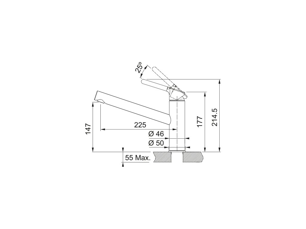 | Délka baterie od středu ke kohoutku (přesah do dřezu): | 200 mm a více |