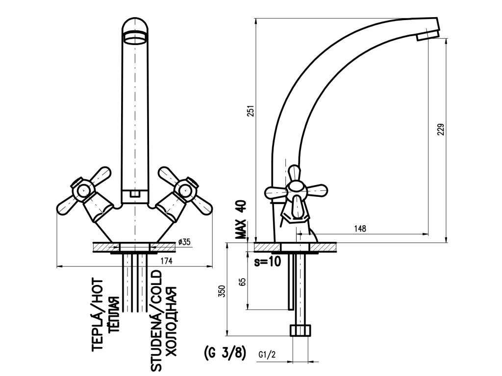 Délka baterie od středu ke kohoutku (přesah do dřezu): | Do 200 mm |
