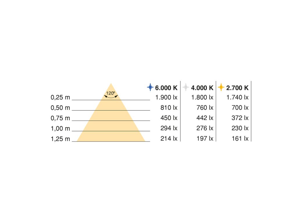 - ✔ Neutrální bílá (~4000 K) – univerzální pracovní světlo: kuchyň, chodba, domácí kancelář