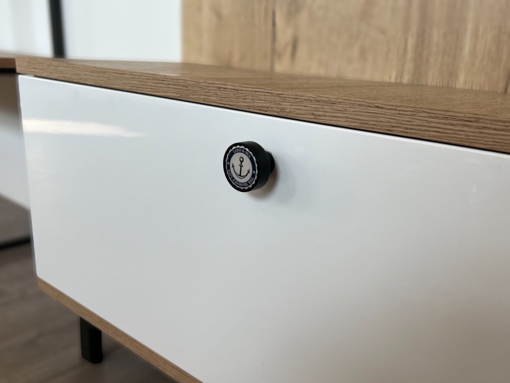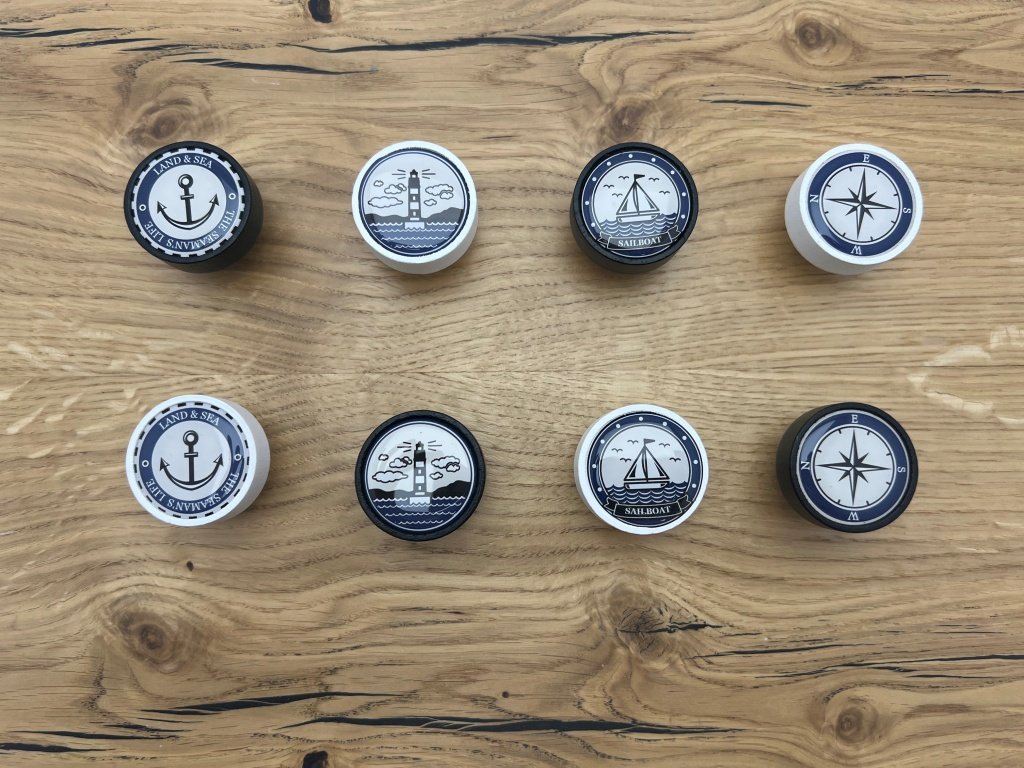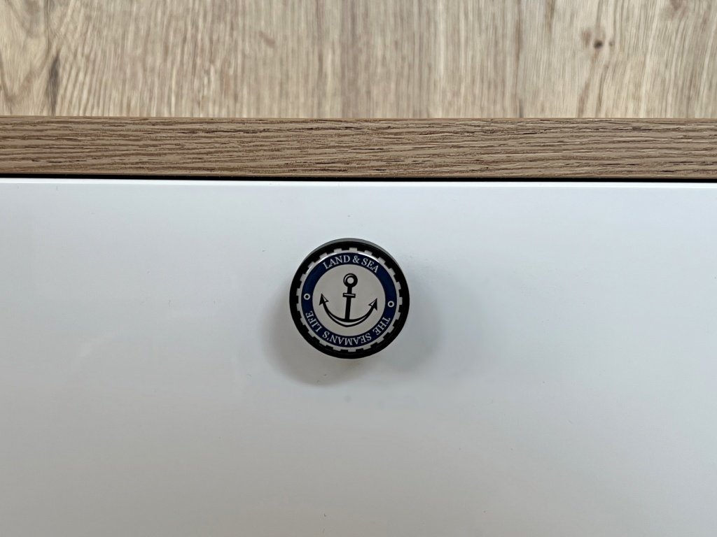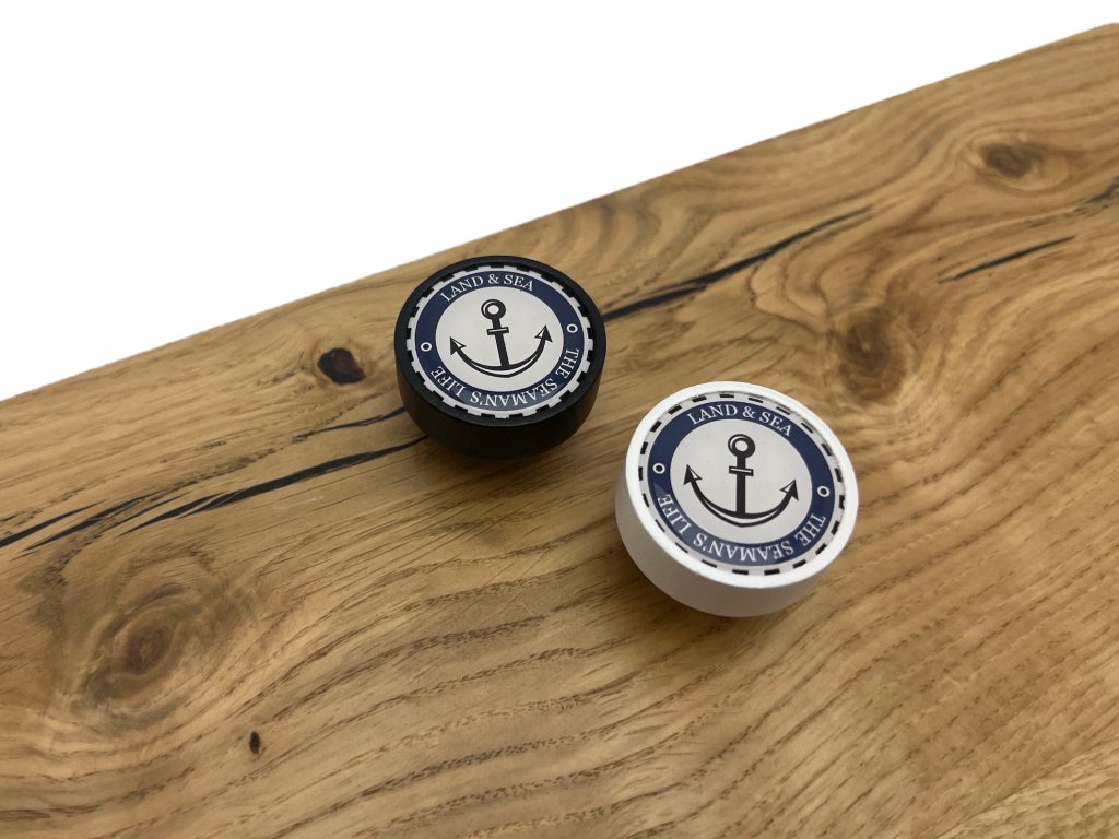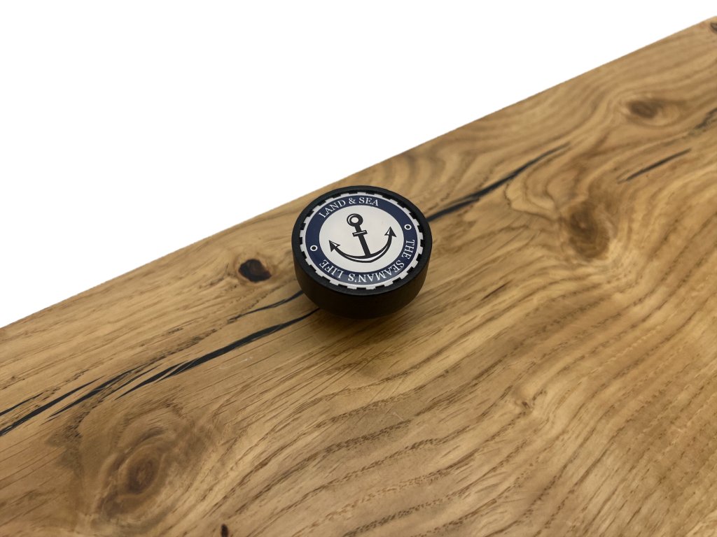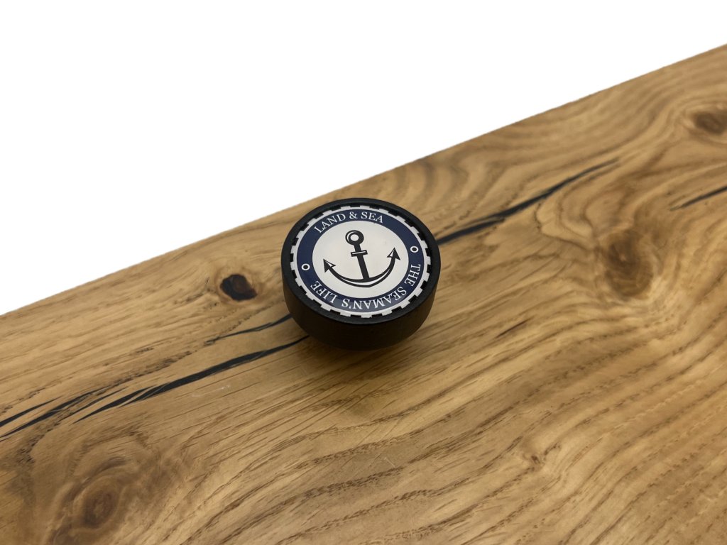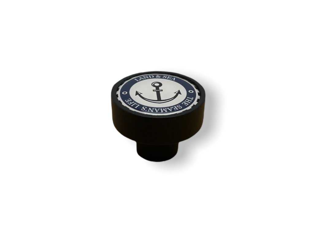 Barevné provedení černý lak v kombinaci s motivem kotvy. Knopka se montuje jednoduše, pomocí přibaleného šroubu délky 22 mm.