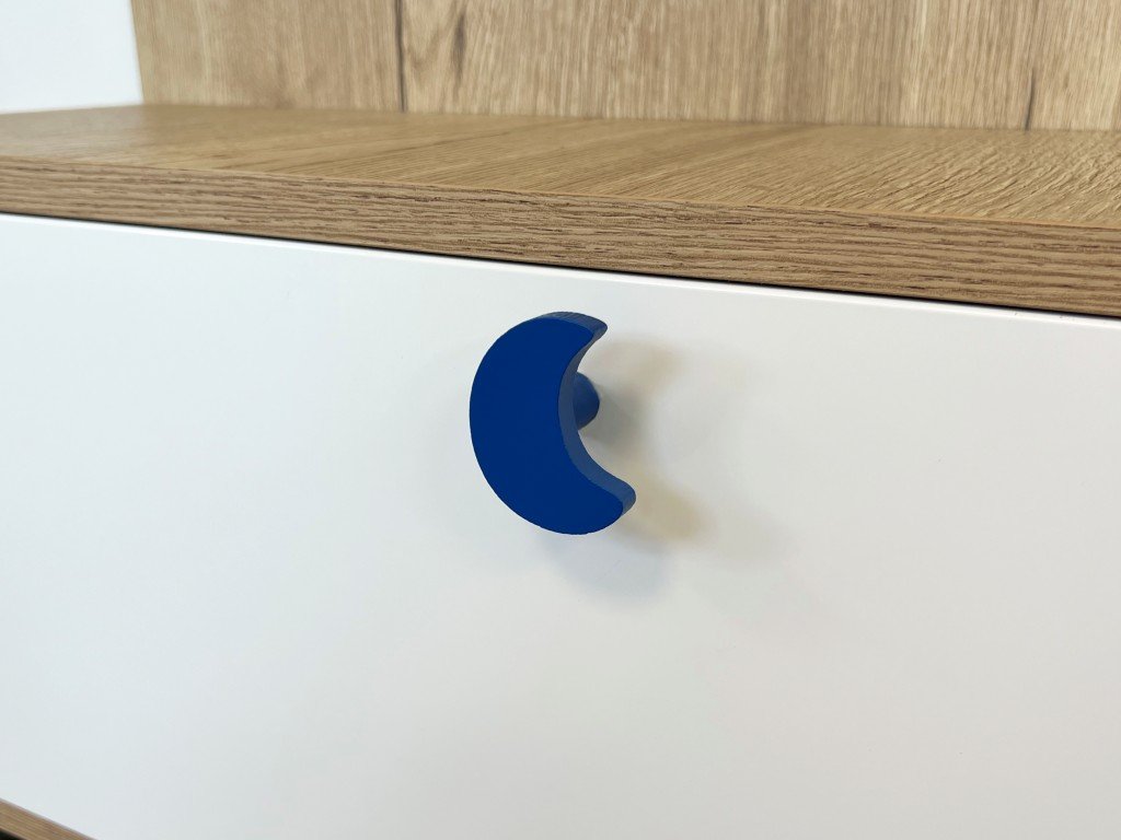 Dětská nábytková knopka, její tvar působí pro děti hravě a radostně. Je vyrobena ze dřeva a lakována do pestrobarevného odstínu. Hodí se skvěle v kombinaci se všemi Uni barvami.