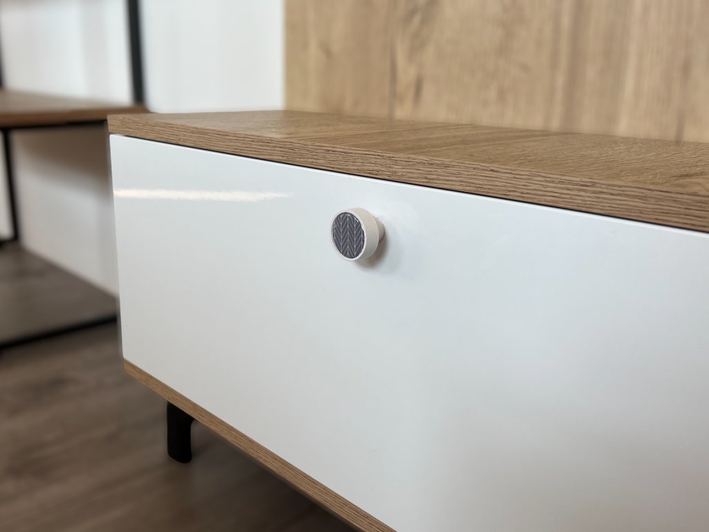 Nábytková knopka Nero bílá, motiv jedle/šedá V19