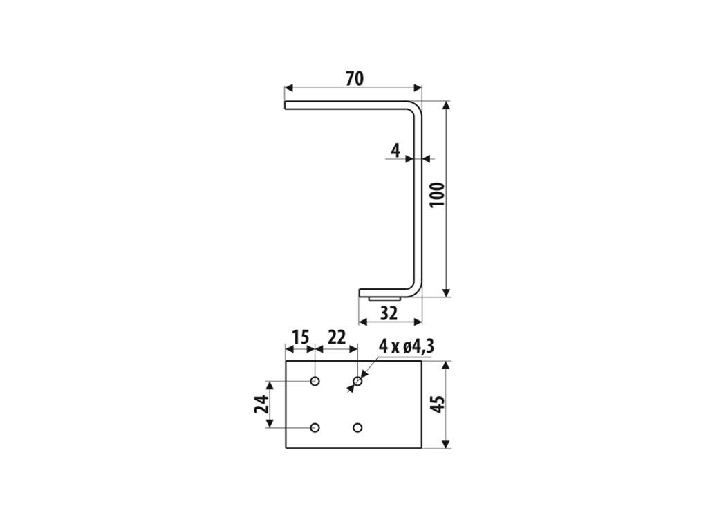 délka 70 mm výška 100 mm šířka 4 mm tloušťka 4 mm |