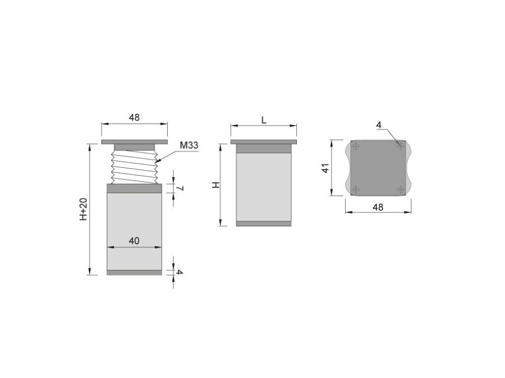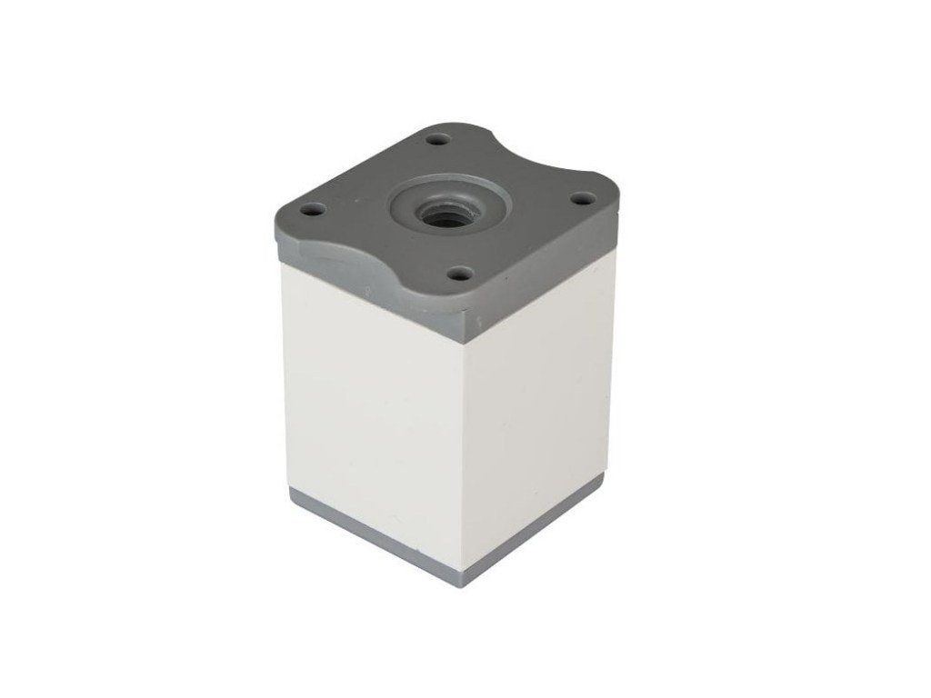 Hranatá hliníková nožka v bílé povrchové úpravě. S plotničkou a rektifikací + 20 mm.