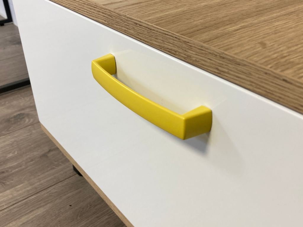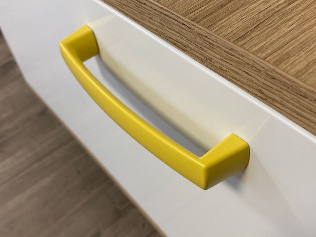 Nábytková úchytka Beny, je velmi moderní. Dětem se s ní dobře otevírá. Dostupná je ve dvou pestrých a neutrálních barvách.