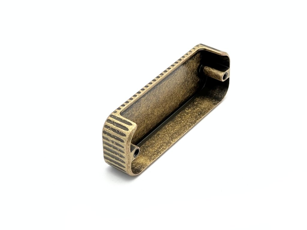 Rustikální kovová úchytka s povrchovou úpravou staromosaz. Díky svému tvaru, úchytka nenarušuje vzhled interiéru. Po okrajích úchytky je jemné vroubkování, které se příjemně drží.