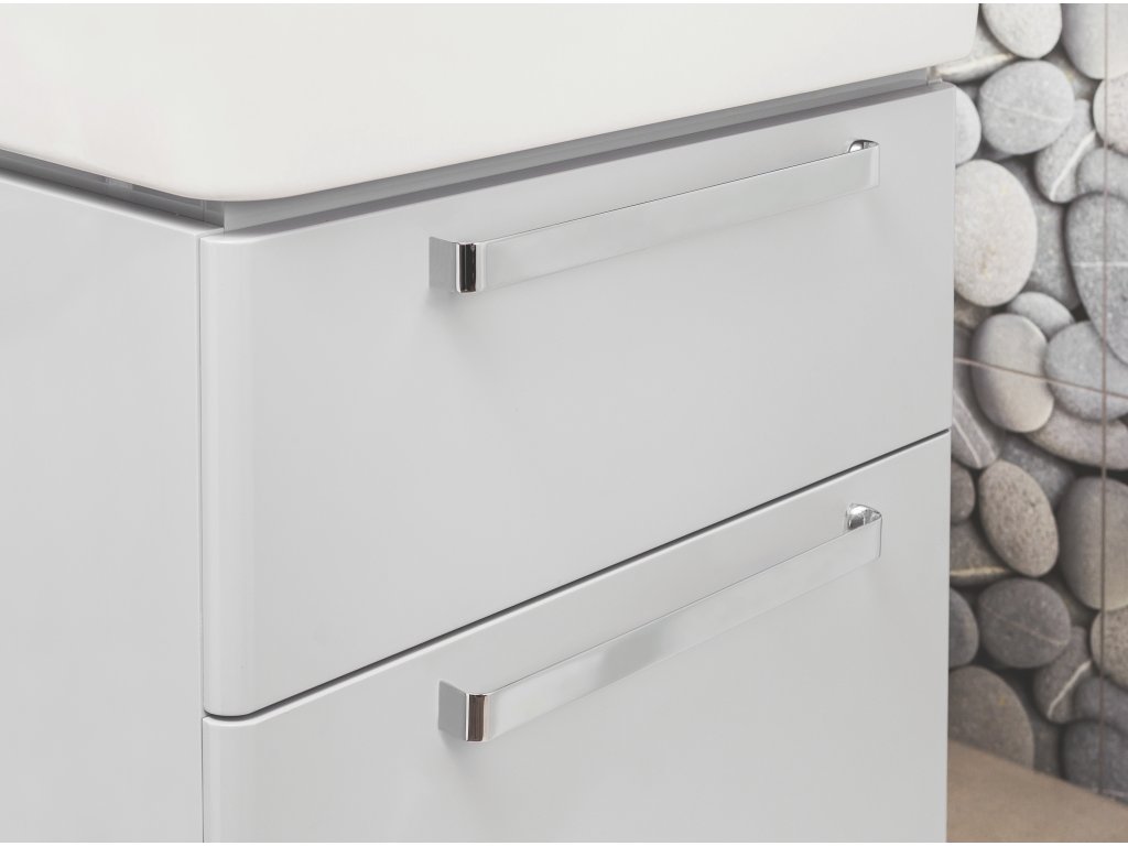 Úchytka Piato v provedení nikl broušený. Jemný a velmi příjemně kulatý tvar, z čelního pohledu je úchytka velmi robustní při dotyku jemná a příjemná na úchop, hrany nejsou ostré. Úchytku lze použít na jakýkoliv nábytek, ovšem v koupelně vypadá skvěle a perfektně ladí s bílou barvou. Součásti její dodávky jsou také okrasné šroubky pro upevnění úchytky k nábytku.