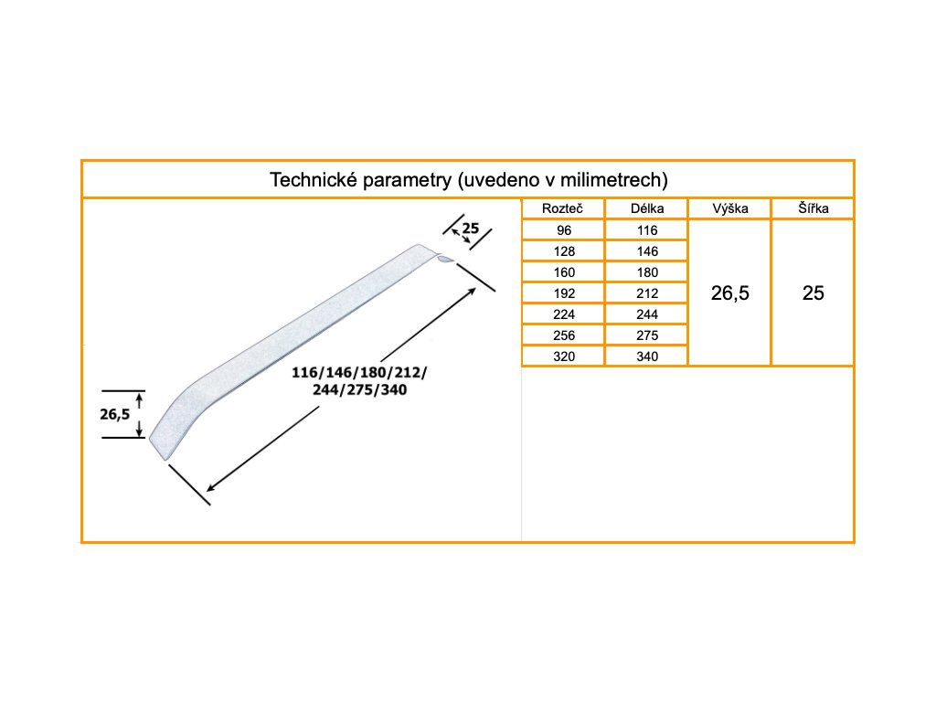 | Rozteč úchytky (mm): | 96, 128, 160, 192, 224, 256, 320 |