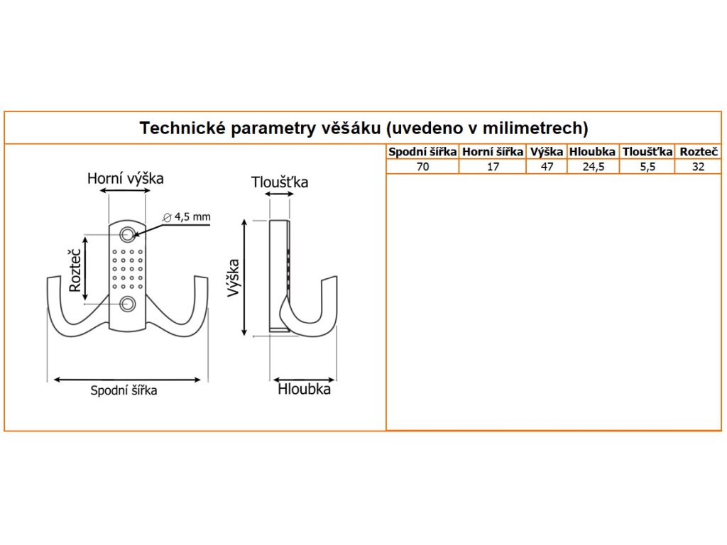 Věšák - způsob montáže: | Zepředu pomocí vrutů |