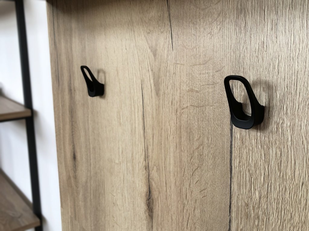 Moderní kovový nábytkový věšák s povrchovou úpravou v trendy černé barvě. Velice jednoduchého designového tvaru, věšák/knopka nenarušuje vzhled interiéru.