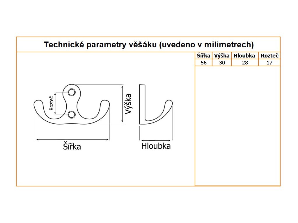| Věšák - způsob montáže: | Zepředu pomocí vrutů |