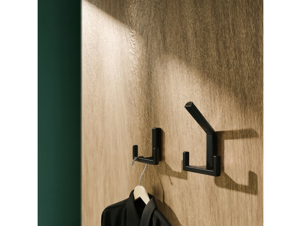 - ✔ Malý věšák – nízký, dva háčky, ideální pro kabáty, kabelky, klobouky ale také například do kuchyně