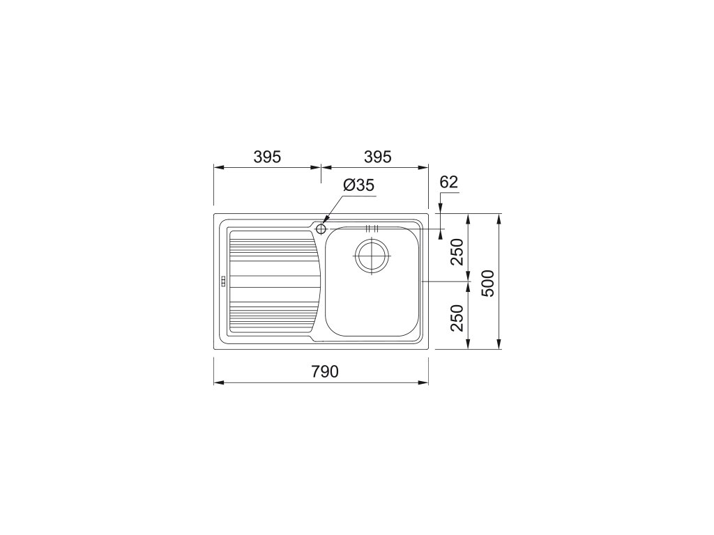 | Dřezy - vnější šířka (mm): | 790 |