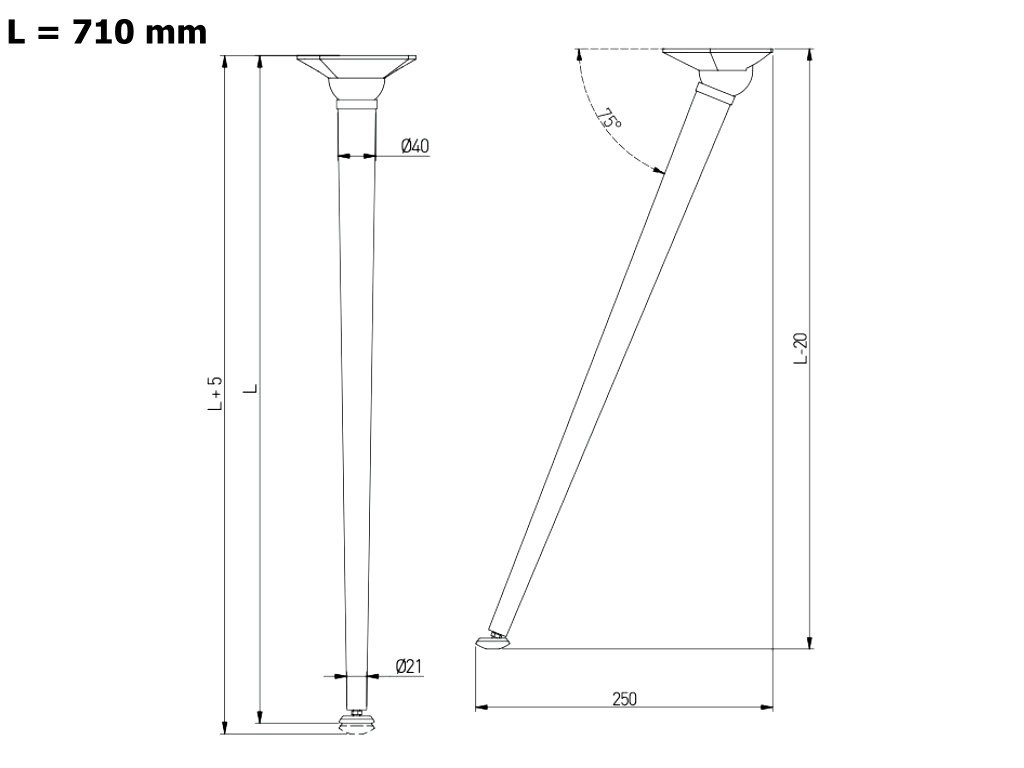 Výška nohy je 710 mm zároveň jde regulovat +5 mm.