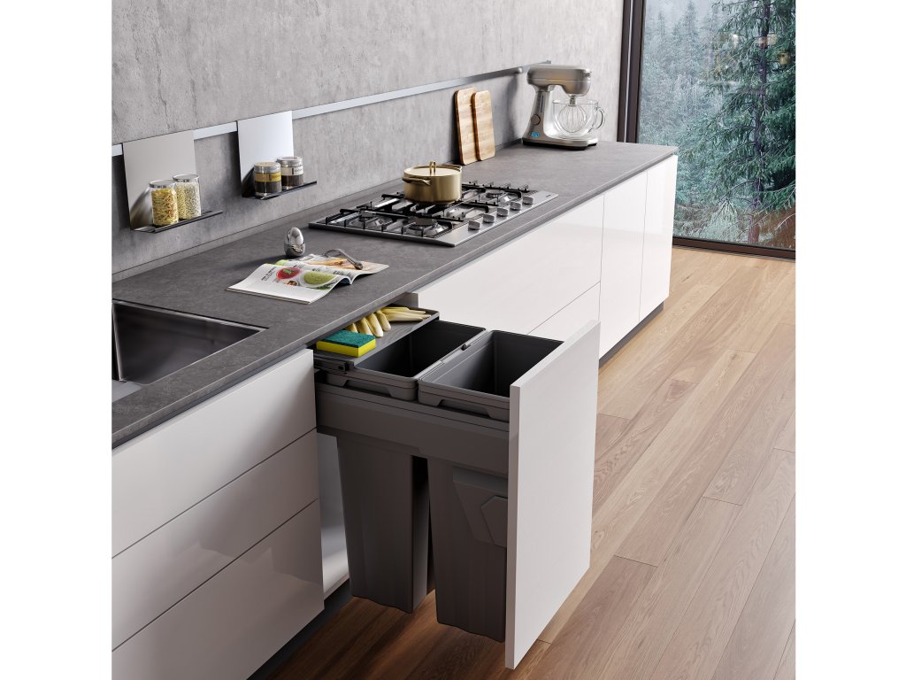 Atraktivní design, zejména díky použité antracitové barvě koše je velmi moderní a působí velmi příjemně. Hodí se do světlých i tmavých korpusů.