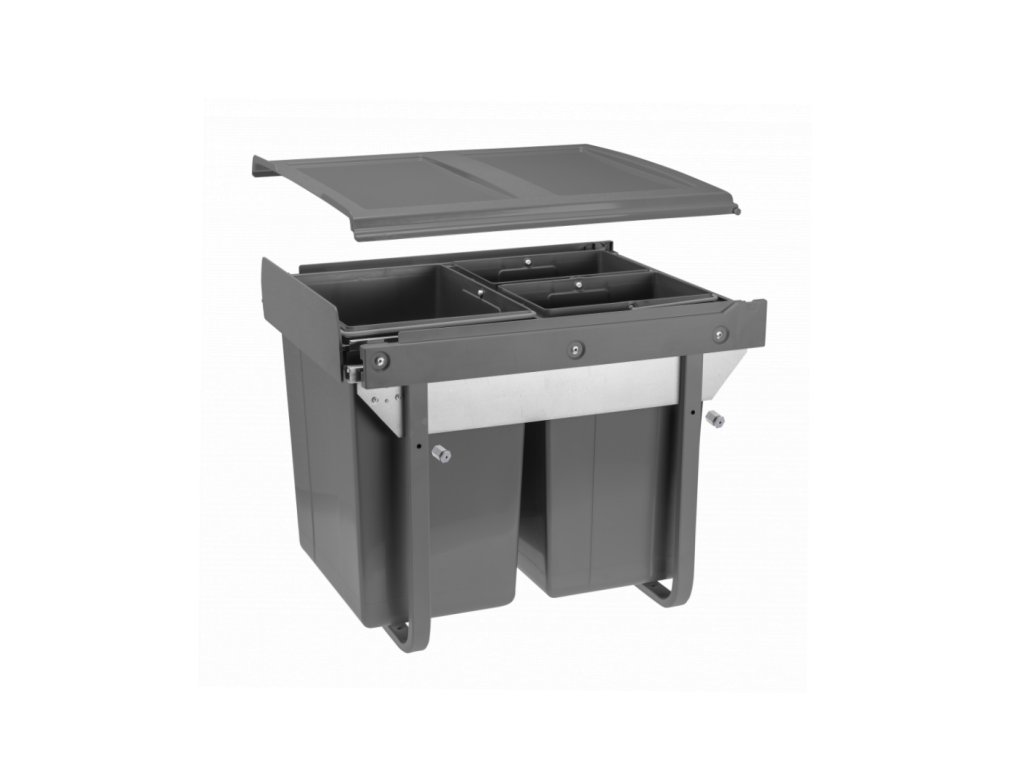Odpadkový koš určený do kuchyňské skříňky s minimální vnější šířkou 450 mm (lze použít i pro širší skříňky), u které se dvířka otevírají pomocí závěsů (pantů). Součástí balení je také montážní materiál. Montáž se provádí do dna skříňky.