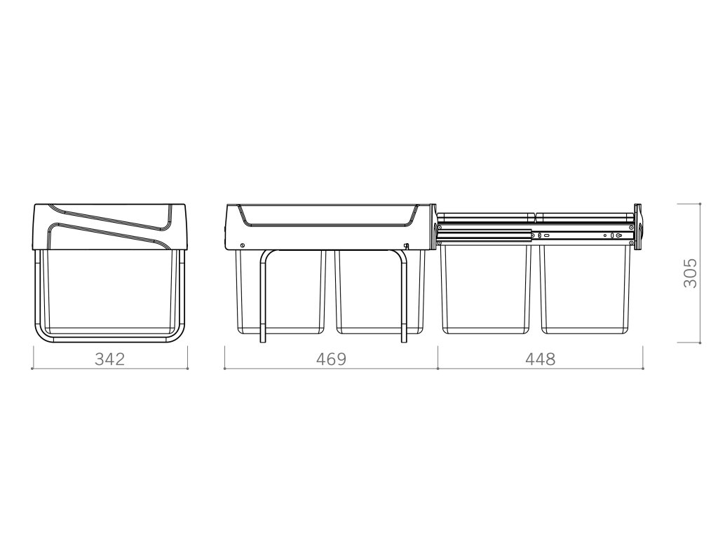 Plné vysunutí koše - dostupné jsou obě nádoby